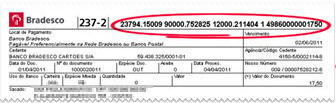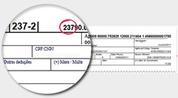 Confira sempre o código do Bradesco, conforme destaque. Esse número deve ser obrigatoriamente 237. Caso esteja diferente, não efetue o pagamento e compareça a uma Agência Bradesco.