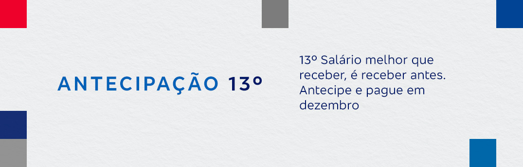 Pague ao receber seu 13º salário, em uma única parcela limitado a 19/12.