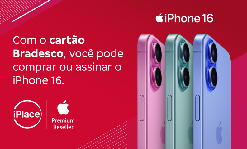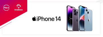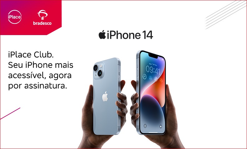 Assine o iPhone 14 durante 21 meses com a menor parcela do mercado usando seu cartão de crédito Bradesco no iPlaceClub.